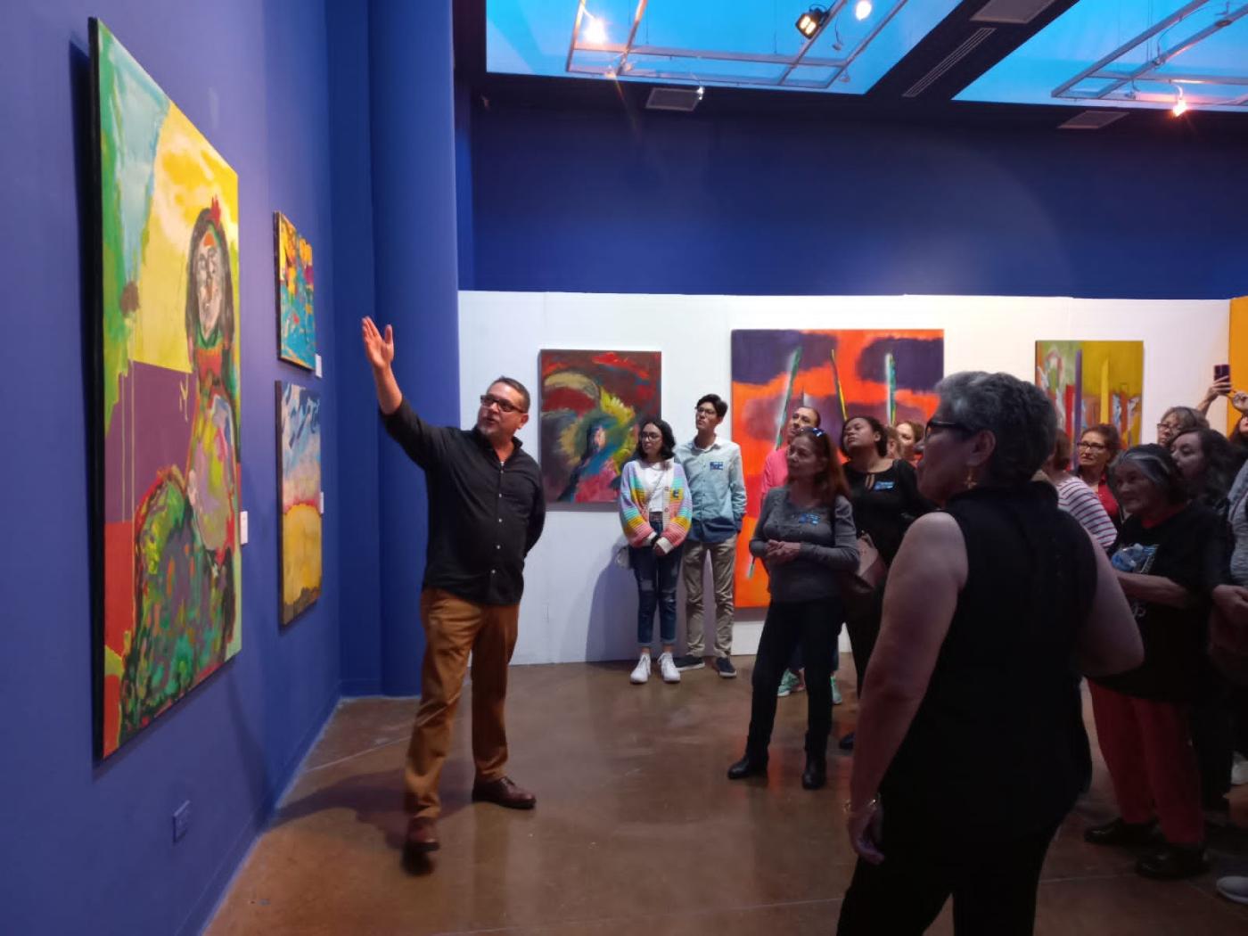 Paulo Medina's "The Construction of a Life in Retrospect" is an open window into a life's journey, a testament to the adventures, pains, and daily rituals presented to us by the artist. This journey began in 1983, when he clearly had a desire to create, to make a proposal based on his context, training, and creativity, a prevailing aspect of his work: the deconstruction of reality presented as a redefined abstraction, nuanced with intense yellows and dark shades that reveal the human being. His visual language, which ranges from collage, photography, easel work, and digital art, is the perfect pretext for interiority, constant searching, and transcendence. I invite you to enjoy this exhibition, which, thanks to a combined effort, is presented here at the great and prestigious Chihuahuan Desert Museum.