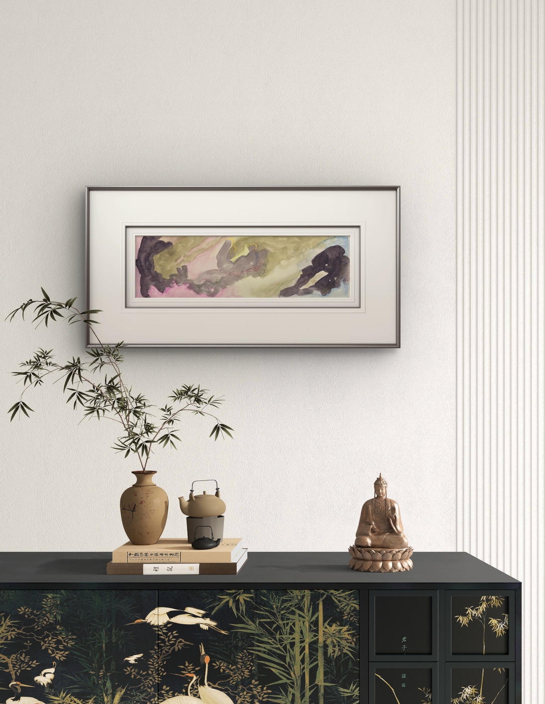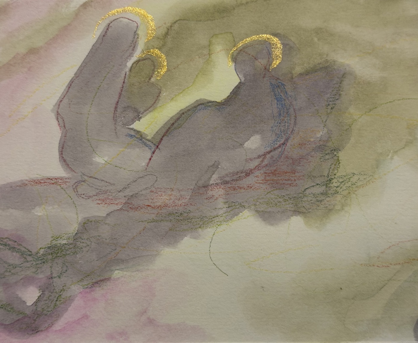 La acuarela “Gruta de Belén” ofrece una interpretación etérea y contemplativa del nacimiento de Jesús. La técnica de la acuarela, con su capacidad para crear transiciones suaves y atmósferas difusas, se presta bien para capturar la mística y el asombro de este evento bíblico. En la obra, los colores suaves y las formas abstractas sugieren más que definen, permitiendo al espectador llenar los vacíos con su imaginación y espiritualidad personal.